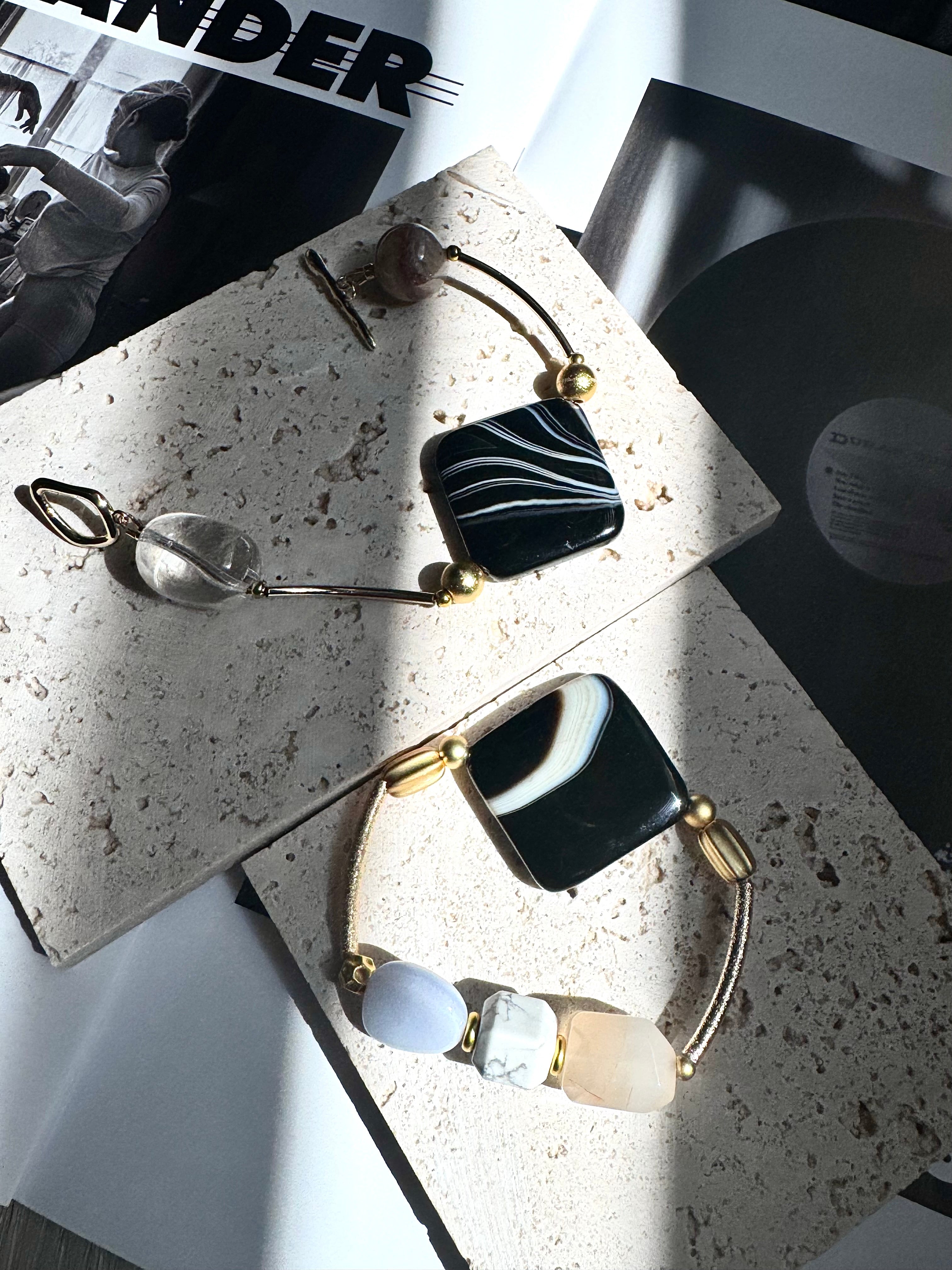 Black Agate Bracelet with Gold Accents Bracelet - ArcLine