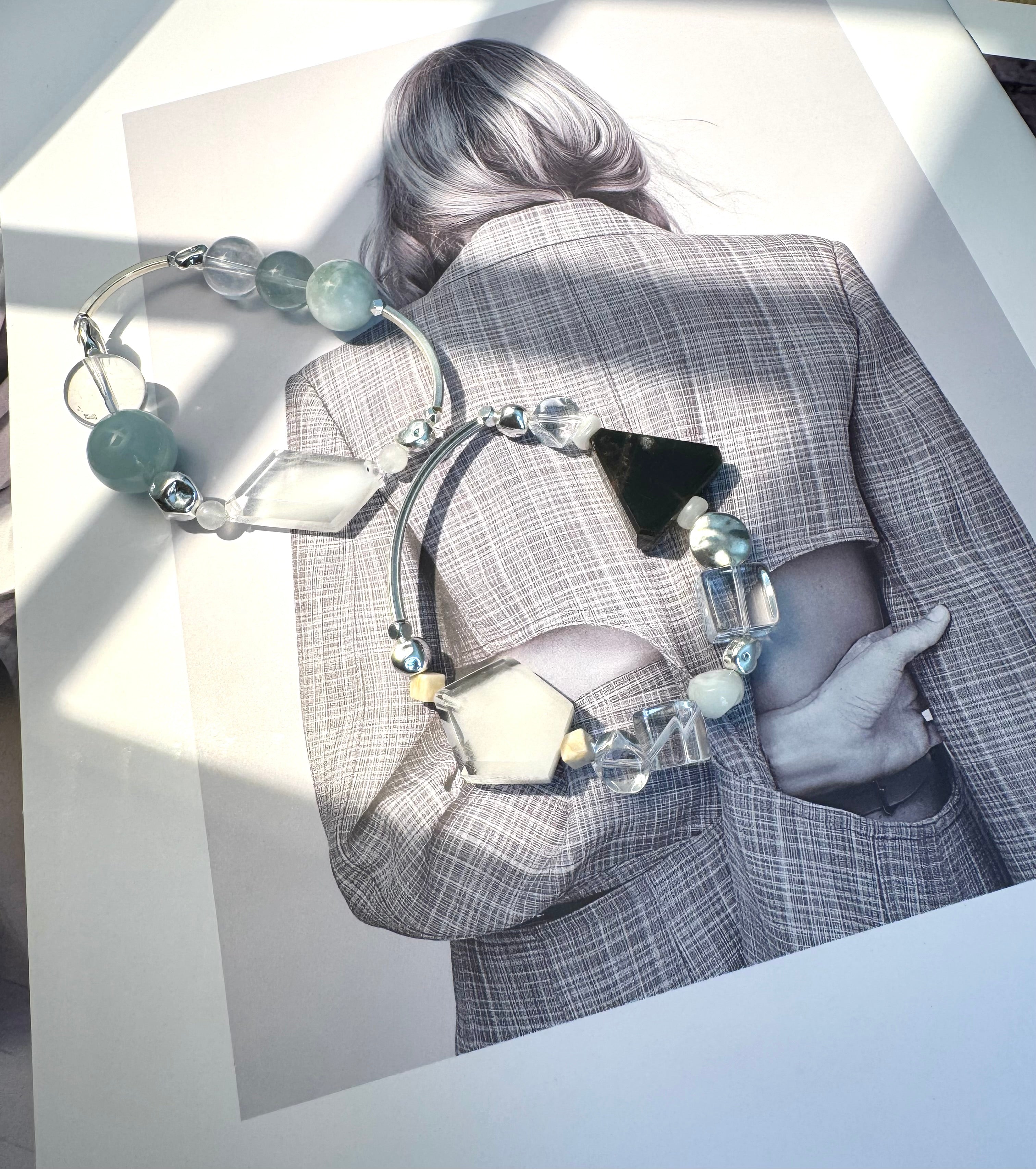 Baroque Pearl & Nature Crystal Bracelet with Paperclip Chain- ArcLine