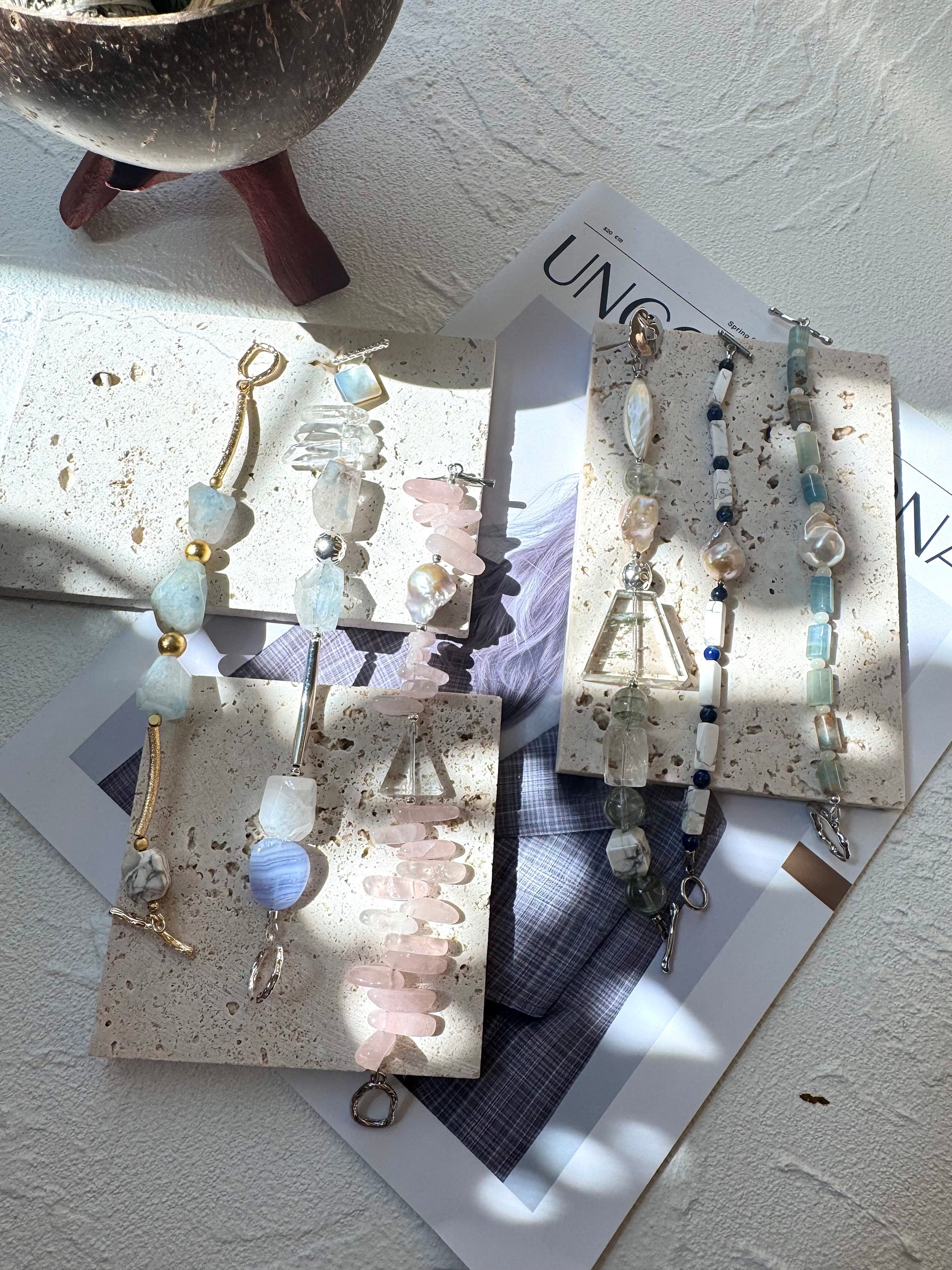 Howlite – Calming, grounding, and stress-relieving; promotes patience and emotional balance