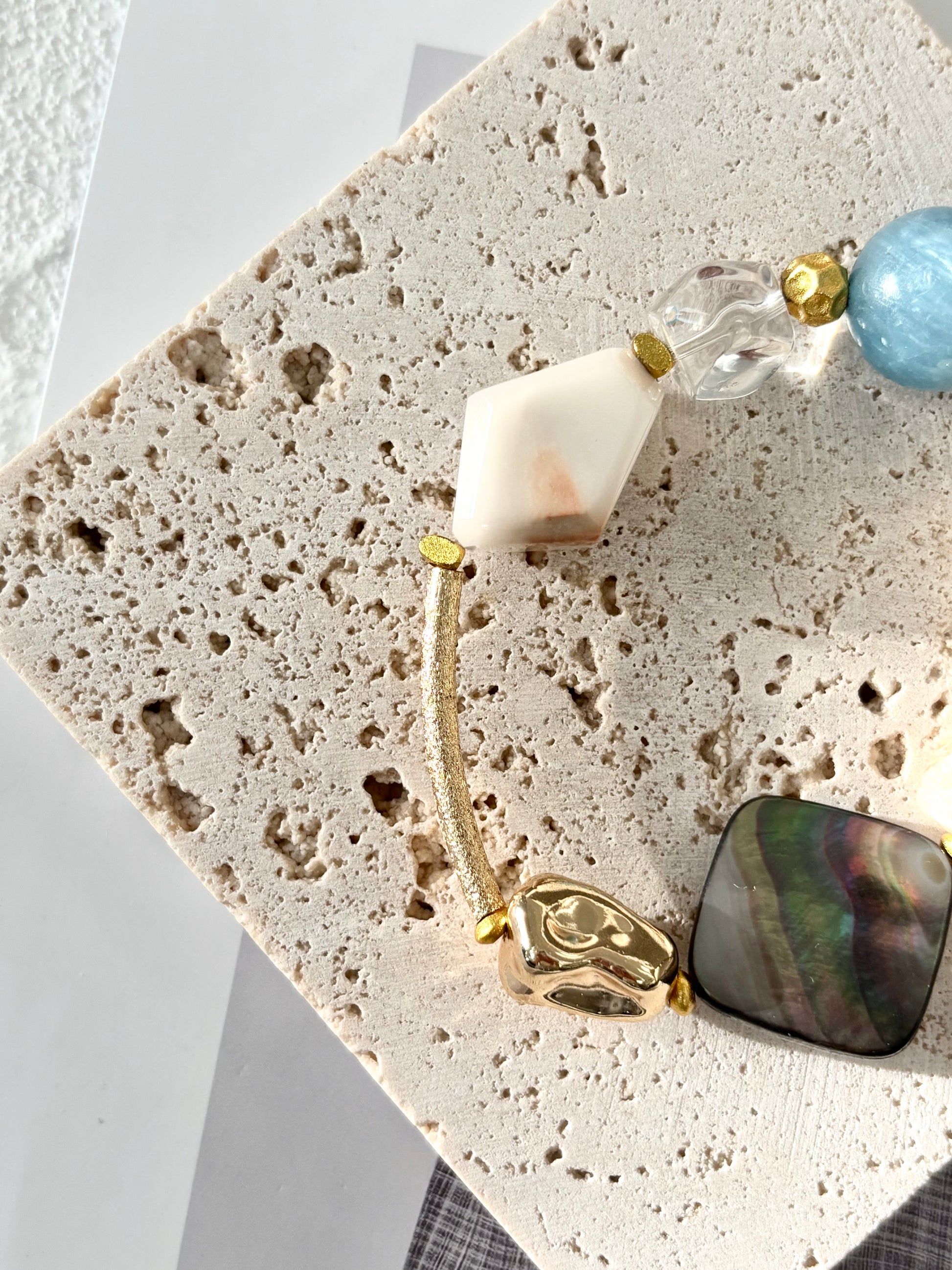White Fur Phantom Quartz & Aquamarine Bracelet - ArcLine OOAK
