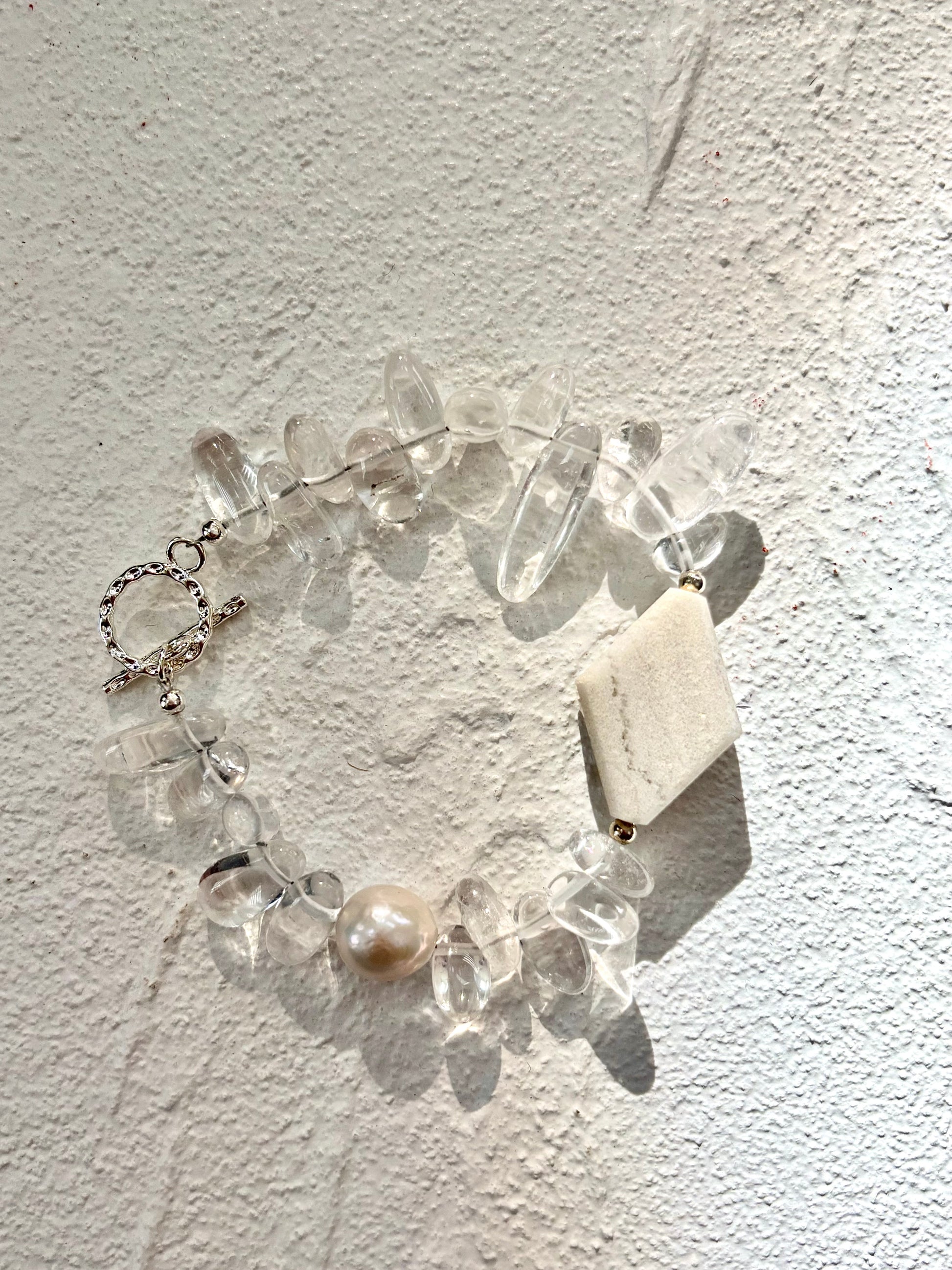 White Phantom Quartz & Clear Quartz Toggle Bracelet - OOAK