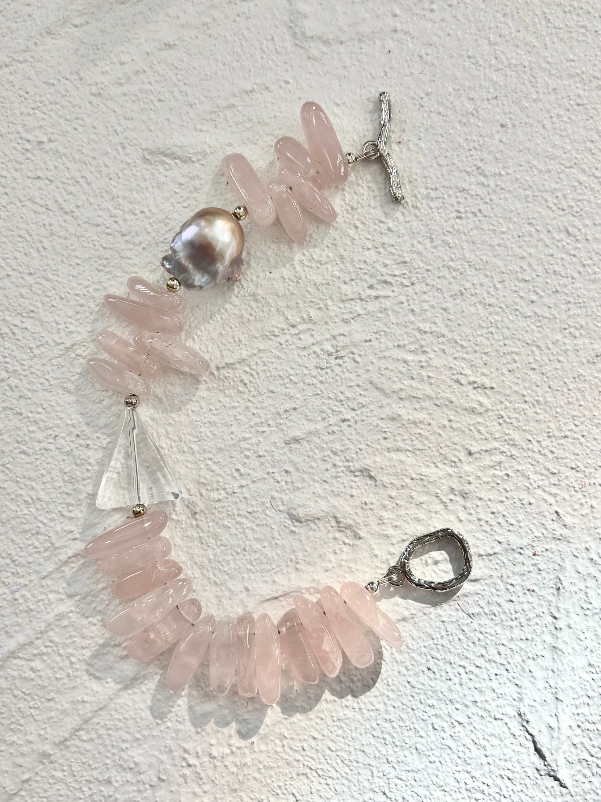 Rose Quartz · Baroque Pearl · Triangle Clear Quartz · Stainless Steel Toggle Clasp