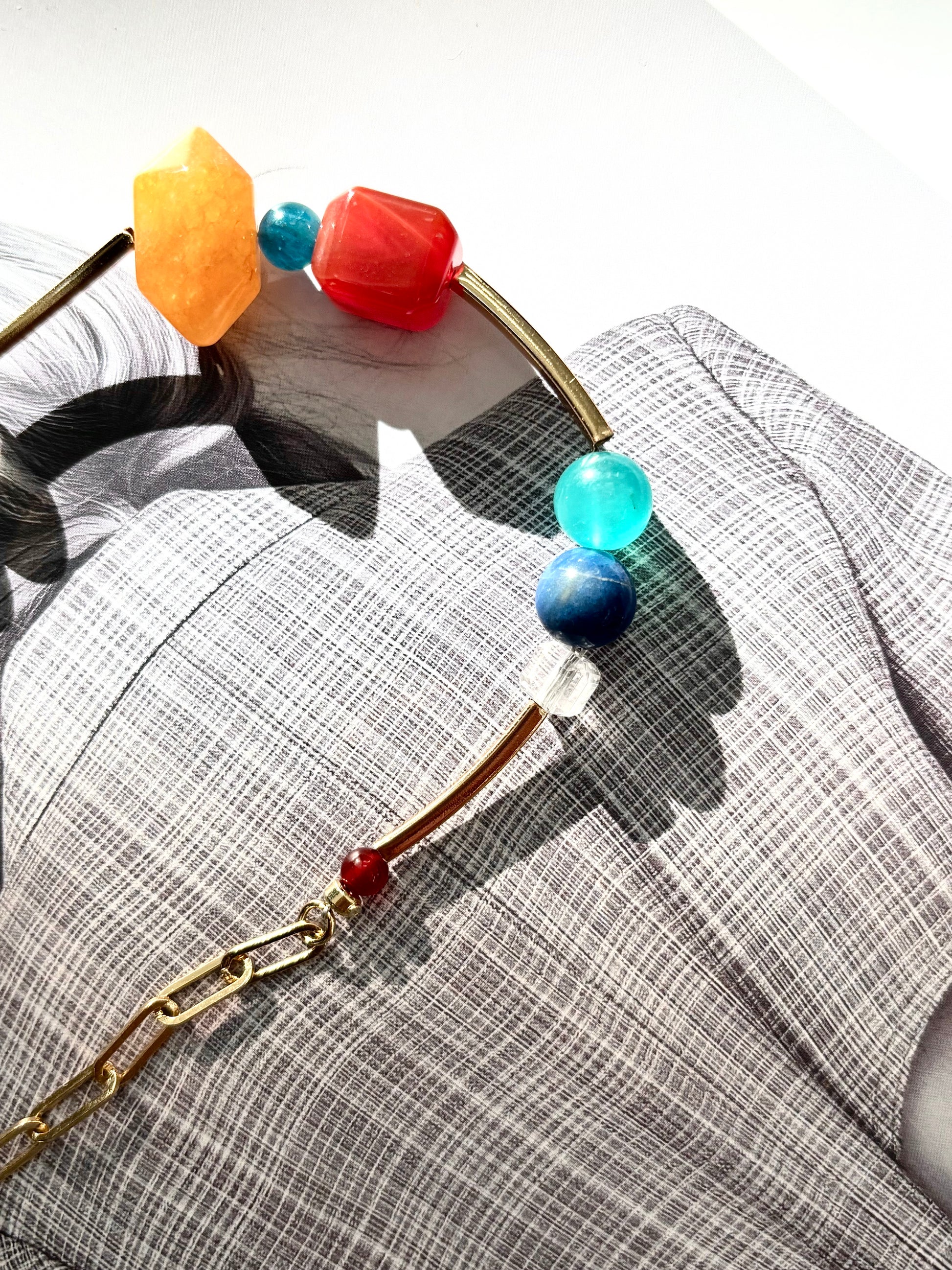 Bring color and elegance together with this Vintage Rainbow Tone Bracelet, featuring a vibrant mix of natural stones — each carrying its own unique energy and charm. This one-of-a-kind piece celebrates bold individuality through soft golden accents and carefully curated gemstones.