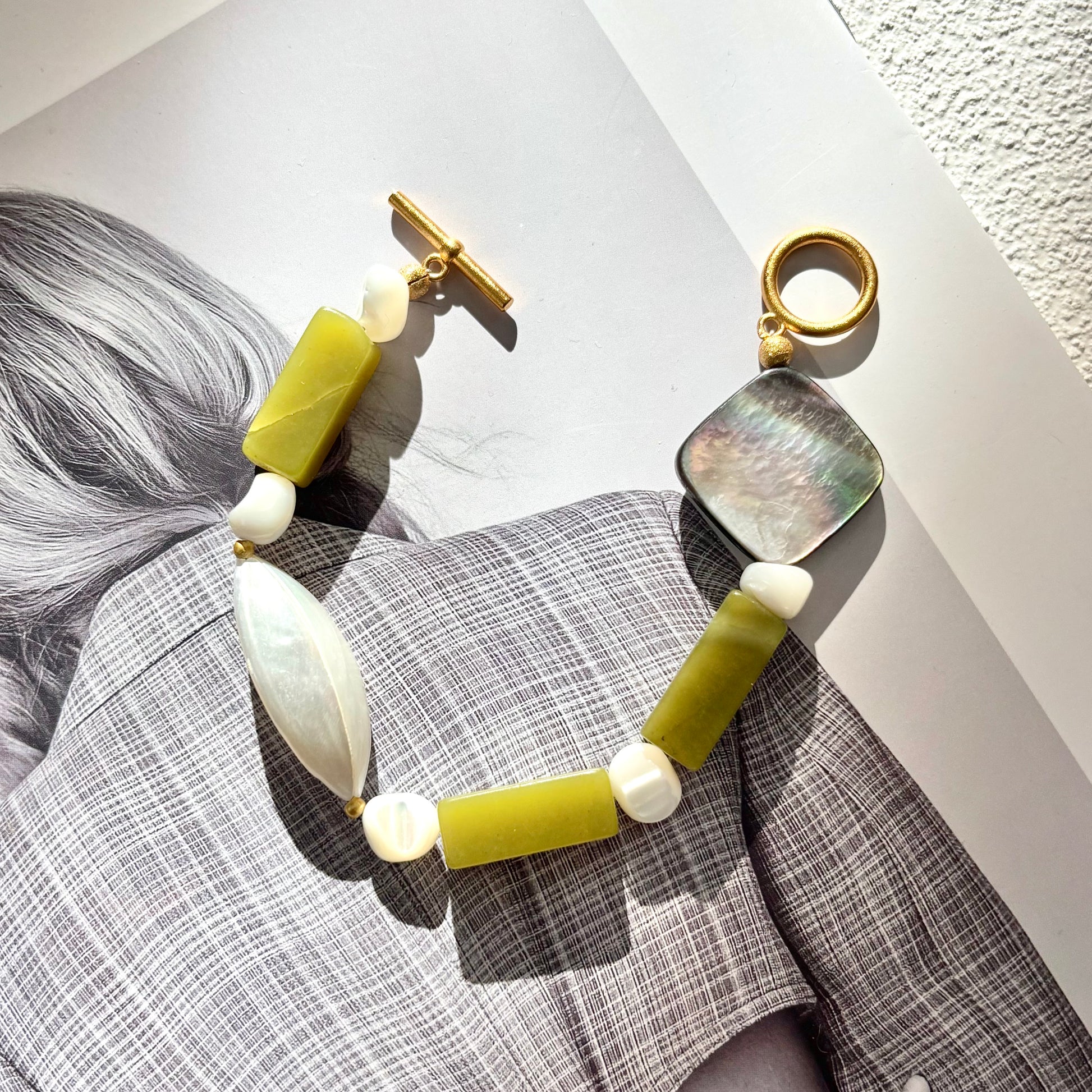 Jade & Mother of Pearl Toggle Clasp Bracelet